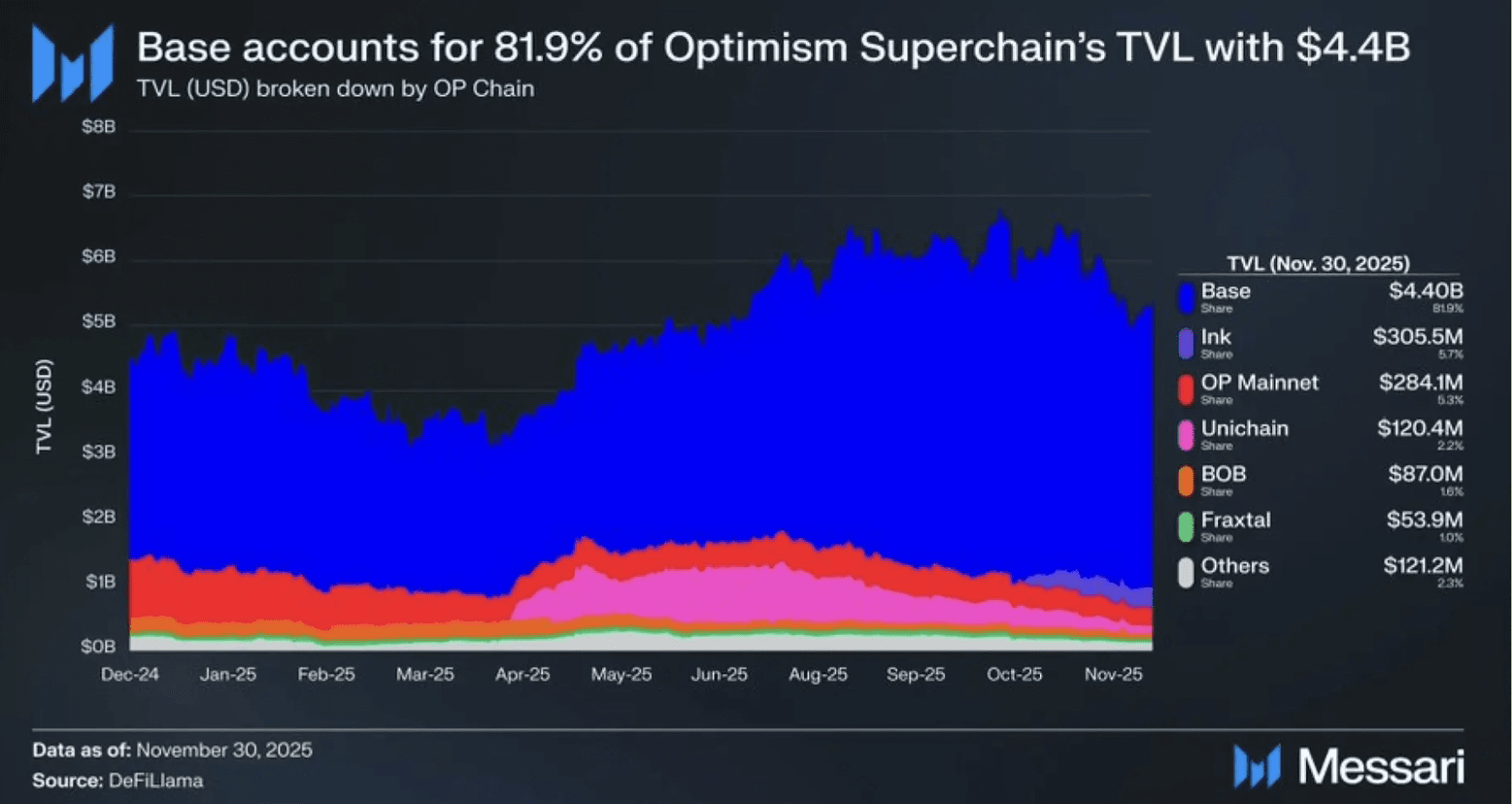 Tantangannya adalah risiko konsentrasi. Base menyumbang lebih dari 80% dari TVL Superchain dan sebagian besar pendapatan yang dibagikan. Menyadari ketidakseimbangan ini, Optimism mengalihkan fokus kembali ke OP Mainnet, di mana 100% pendapatan diterima oleh DAO. Langkah ini mencerminkan kesadaran yang lebih luas: ekosistem yang dibagikan hanya berhasil jika mereka menghasilkan arus kas yang berarti dan dipertahankan.