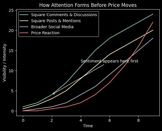 Ketakutan, keserakahan, dan ketidakpastian cenderung muncul dalam bahasa dan nada sebelum mereka muncul di grafik. Square menangkap perubahan awal ini karena reaksi bersifat langsung dan sebagian besar tidak terfilter.