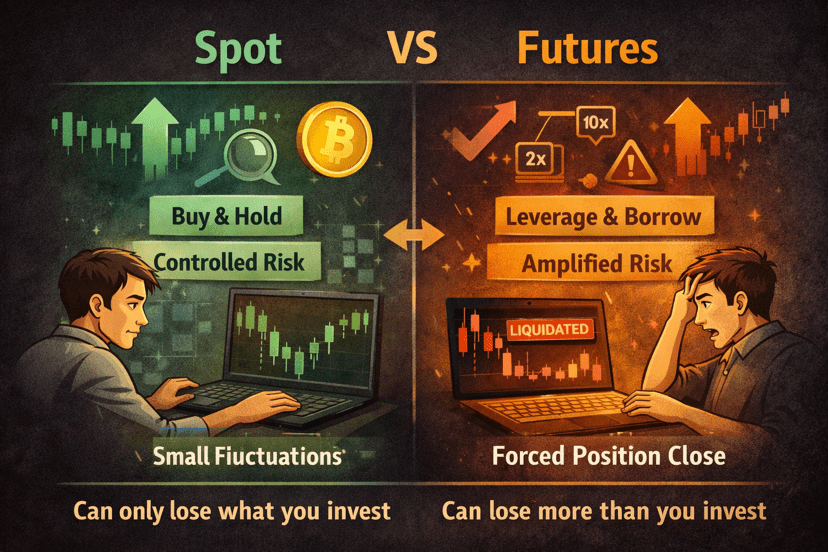 Banyak pemula percaya bahwa perdagangan Futures hanyalah versi yang lebih cepat dari perdagangan Spot. Itu terlihat mirip di layar, tetapi struktur risikonya sangat berbeda.