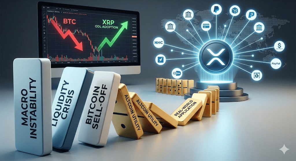 Efek domino sedang perlahan terbentuk. Tahun 2026 bisa menjadi titik balik ketika utilitas dan adopsi organisasi mengalahkan posisi tradisional Bitcoin. Investor harus memantau aliran ETF XRP, langkah Ripple, fluktuasi makro, dan perdagangan carry yen.