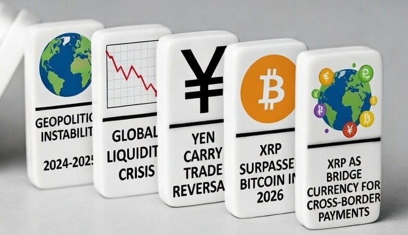 Para ahli seperti Jake Claver (Teori Domino XRP) berpendapat bahwa ketidakstabilan geopolitik, krisis likuiditas global, dan pembalikan perdagangan carry yen Jepang akan menciptakan efek domino. Ketika aliran uang tradisional dipersempit, investor akan beralih ke aset dengan utilitas nyata yang tinggi seperti XRP – dengan kecepatan transaksi 3-5 detik, biaya rendah dan peran sebagai jembatan pembayaran lintas batas.