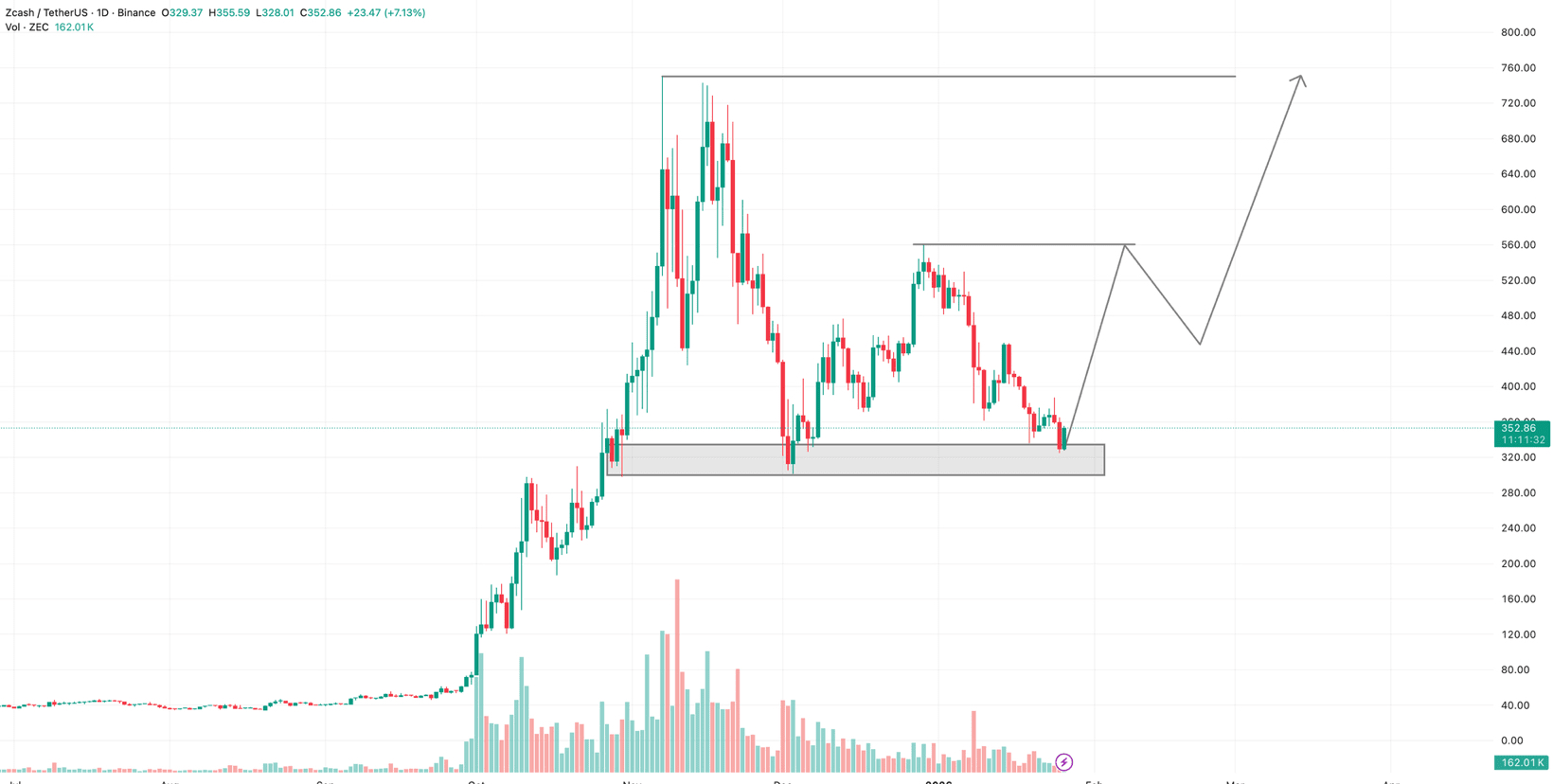 Sebagai aset yang berfokus pada privasi warisan, $ZEC terus menarik modal spekulatif selama fase momentum tinggi.
