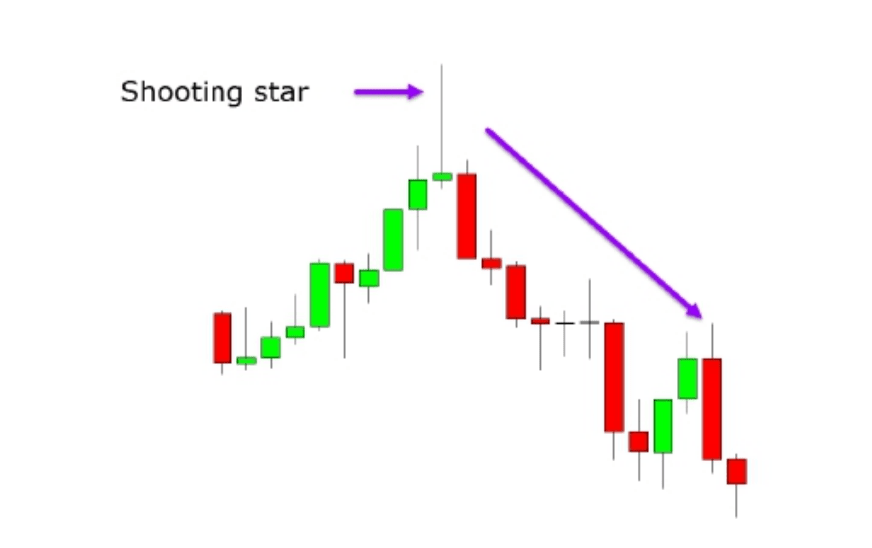Lilin bintang jatuh terbentuk di puncak. Itu terbentuk di puncak setelah reli kuat di pasar. Volumenya lebih besar dari lilin sebelumnya. Untuk melakukan perdagangan di sini, harga buka dari lilin kedua yang baru harus berada pada harga tutup dari bintang jatuh. Ketika lilin baru turun di bawah harga rendah dari lilin bintang jatuh, posisi jual harus dibuat.