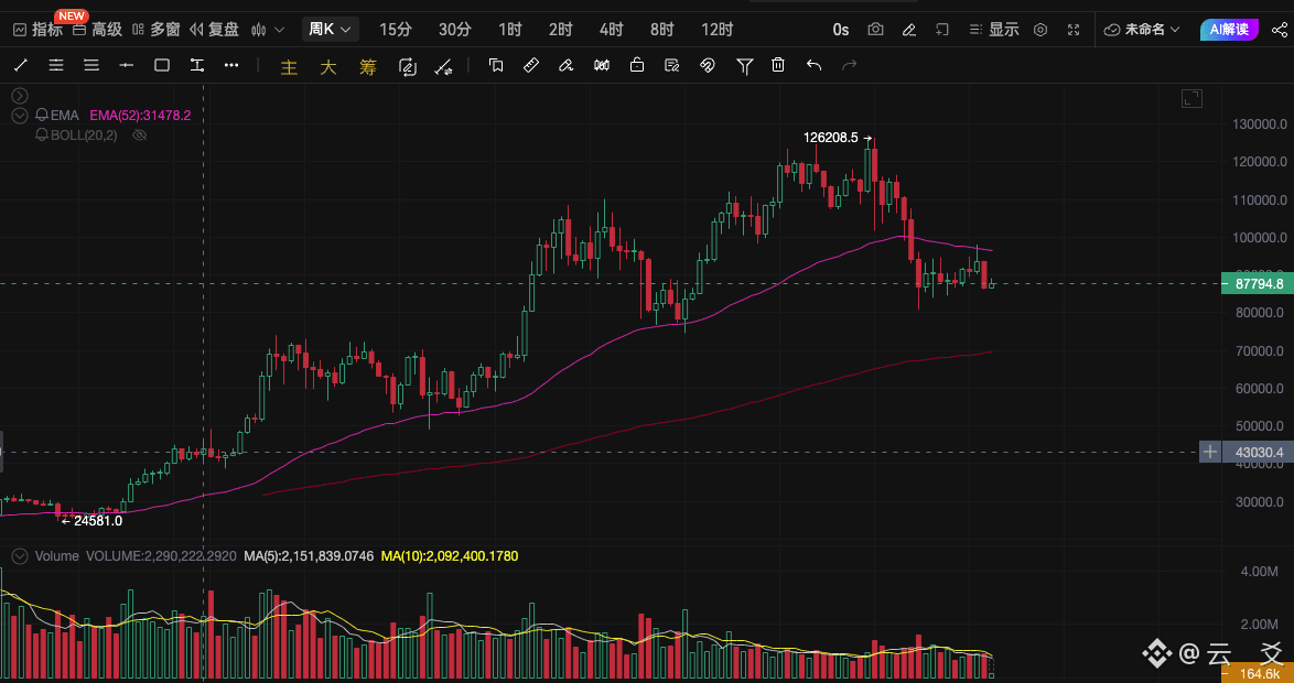 这就是典型的“深蹲洗盘”。主力在 9 万上方派发了一部分,现在利用宏观(美联储那点破事)和恐慌情绪,把不坚定的筹码洗出去。
