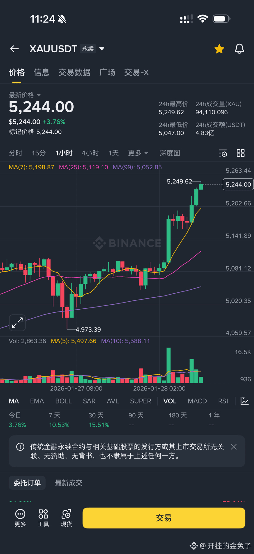 黄金 $XAU 当前价格 5244 美金/盎司;