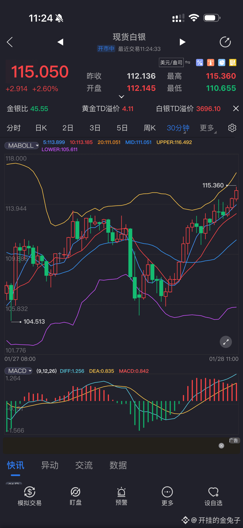 继续持有黄金,做空黄金白银的人谨慎,昨天白银那个 K 线是不是叫做阳包阴还是阴包阳?