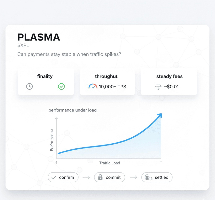 Apa yang membuat PlasmaBFT sangat cerdas adalah pipelining. Alih-alih memproses setiap tahap konsensus secara berurutan di mana Anda pertama kali mengusulkan, kemudian memilih, kemudian mengonfirmasi, Plasma memungkinkan tahap-tahap ini berjalan secara paralel. Sementara putaran v plus 2 sedang mempersiapkan blok baru, putaran v plus 1 sedang dalam pre commit, dan putaran v sedang menyelesaikan. Pemrosesan paralel ini secara dramatis meningkatkan throughput maksimum tanpa mengorbankan keamanan. Protokol mencapai finalitas sub detik untuk sebagian besar transaksi, yang persis apa yang dibutuhkan infrastruktur pembayaran ketika Anda menyelesaikan transfer global secara real-time.