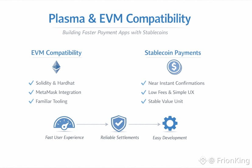 I view payments in three layers, perceived speed for the user, certainty for reconciliation, and simplicity for integration. Plasma combines a stablecoin first direction with EVM compatibility to accelerate all three. Users feel speed because confirmations are fast and steps are fewer. Merchants feel confident because the flow is clear and easy to verify. Developers move faster because they can reuse familiar tooling, audits, and patterns instead of inventing everything again. Do you want your app remembered for being as fast as tapping a card, or forgotten because it kept saying wait a bit more until users walked away.