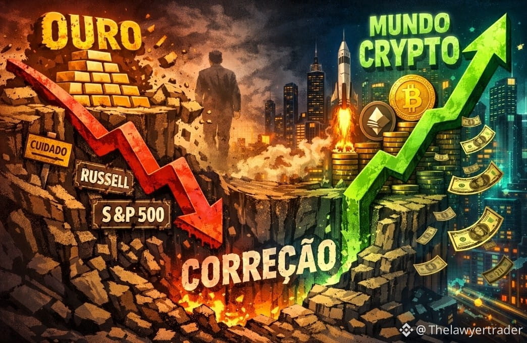 O ouro? Extremamente esticado. Num nível quase bizarro. E, justamente por isso, uma correção relevante não pode ser descartada. Se ela vier, o movimento natural tende a ser a migração desse capital, e o destino mais óbvio é o mercado cripto.