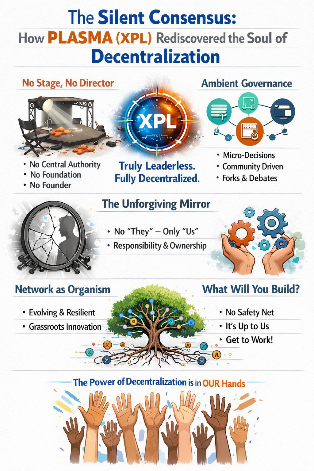 PLASMA, in its relentless subtraction, has accidentally become one of crypto's most pure experiments in what decentralization was always supposed to feel like: awkward, empowering, responsible, slow, and fiercely alive. It removed the safety net of central authority and in doing so, asked its community a single, haunting question: Now that no one is in charge, what are you going to build?