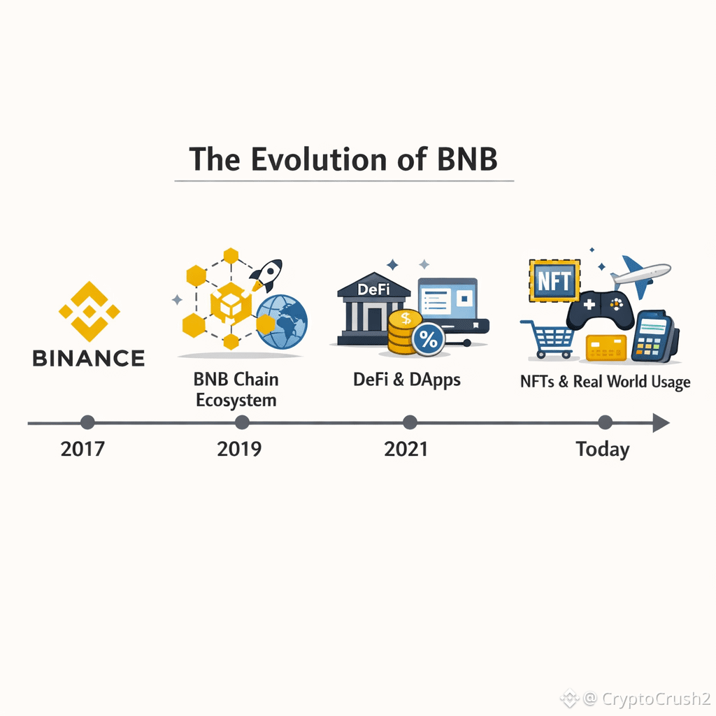 BNB started in 2017 as a utility token for Binance exchange. At that time it was mainly used to get trading fee discounts. Many people treated it like just another exchange coin and nothing more.