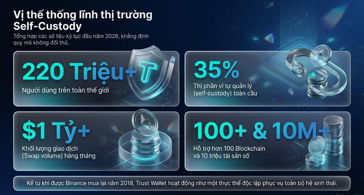35% Pangsa pasar global: Setiap 3 pengguna dompet yang dikelola sendiri, 1 di antaranya adalah pengguna Trust Wallet.