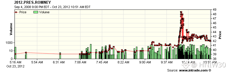 The potential threat of election manipulation has never disappeared. On the morning of October 23, 2012, during the Barack Obama-Mitt Romney campaign, a trader placed a large order to buy Romney shares on InTrade, causing the price to surge by about 8 points, from just under 41 cents to nearly 49 cents—a price that, if believed, suggested a near tie. However, the price quickly retreated, and the media paid little attention. The identity of the alleged manipulator was never confirmed.