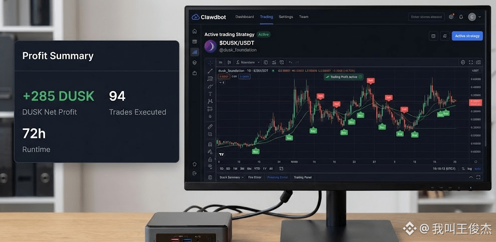 最近隐私赛道动作频频,@Dusk 的技术进展让日内振幅显著加大。为了抓这波短线机会且不影响主业工作,我启用了一台闲置的Mini主机,部署 Clawdbot 专门针对 DUSK/USDT 交易对跑了一套“动态区间网格”策略。