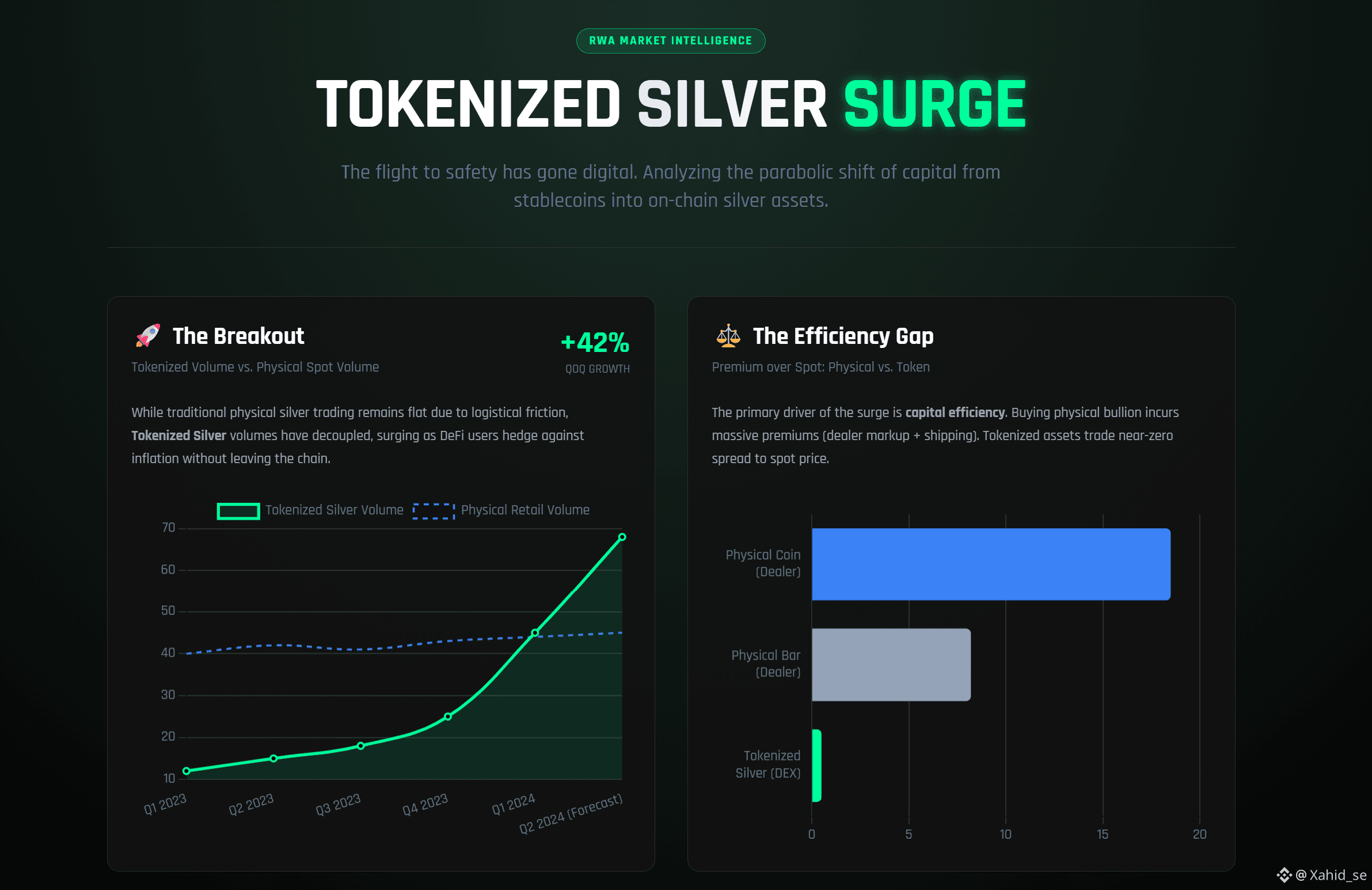 There is a mass rotation occurring in the crypto market, but not all of this is going into memecoins or L1s. Tokenized Silver (RWA) is on a parabolic curve in terms of volume, as it begins to bridge hundreds of years of store of value with DeFi velocity.