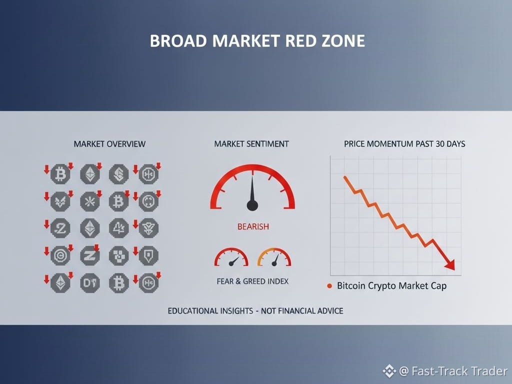When the overwhelming majority of assets move together, it signals a correlated market phase, often driven by external sentiment rather than individual token narratives. This helps learners grasp why market psychology and systemic risk events can override project-specific news. Episodes like this are useful case studies in market correlation and sentiment analysis — fundamentals of crypto education.
