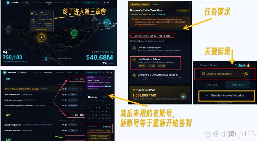 1、Termmax新用户:连续5天的基础签到徽章和5万XP