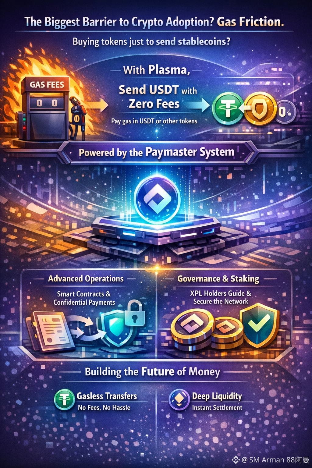 The biggest barrier to crypto adoption has always been gas friction. the need to buy a native token just to send a stablecoin. plasma solves this through its innovative Paymaster system.the network can sponsor gas fees, allowing users to send USDT with zero fees. Users can choose to pay gas in usdt or other supported tokens, removing the complexity of managing multiple balances.Advanced Operations: While basic transfers can be free, complex smart contract deployments and interactions utilize XPL for fees.Governance: As the ecosystem matures, XPL holders guide the roadmap for future upgrades, including the upcoming Confidential Payment module.Whether you are a merchant looking for instant settlement or a enthusiast seeking deep liquidity. plasma is building the definitive infrastructure for the future of money. Human wright postWhy Plasma is the "Fast Lane" for the Global Stablecoin EconomyThe technical foundation of plasma is what sets it apart. By leveraging PlasmaBFT a high throughput variant of the Hot Stuff consensus protocol. the network achieves sub-second block finality. This means transactions aren't just. they are effectively instant making XPL the backbone of a network that rivals traditional payment processors like Visa.the execution layer is built on Reth, a high performance Rust implementation . This gives developers the best of both worlds: full Ethereum compatibility with the speed and safety of the Rust ecosystem.#Plasma $XPL @Plasma