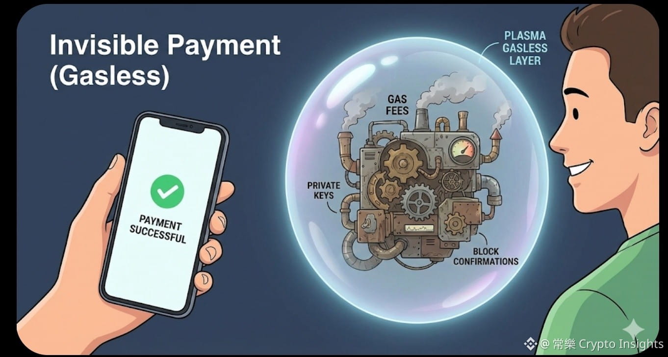 Plasma 就在做这件事。它通过底层的账户抽象,把区块链最硬的那些骨头(Gas 费、助记词、签名)全部嚼碎了咽下去,留给用户的就是丝滑的支付体验。
