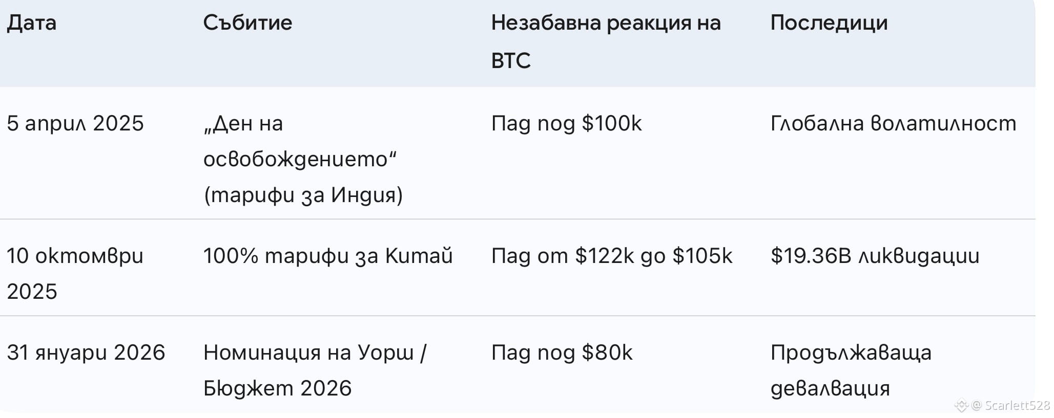 Сривът на Биткойн под 80 000 долара през 2026 г. не е краят на криптовалутите, а по-скоро краят на тяхната фаза на „дива свобода“. Всички доказателства – от номинацията на Кевин Уорш до рекордните разпродажби от китовете и ETF изходящите потоци – сочат към едно и също: координирано усилие за консолидиране на пазара под институционален контрол.