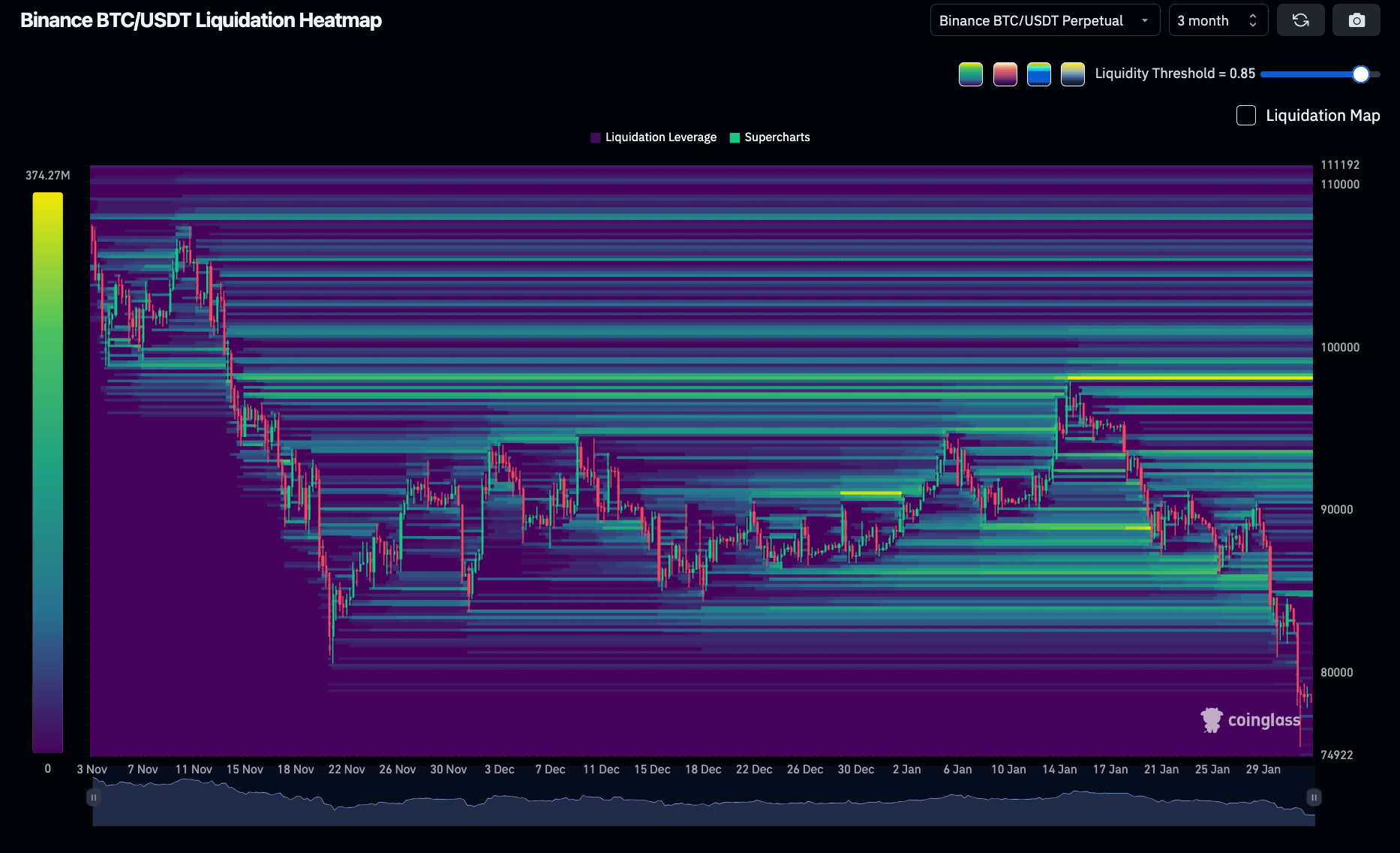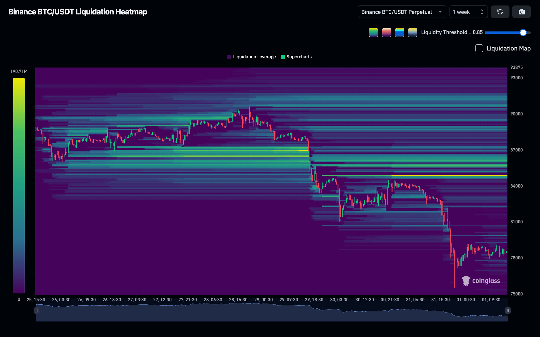 Peta panas likuiditas BTC di Binance, tingkat yang paling mencolok - benar-benar terlihat seperti "mencukur dari bawah sudah tidak ada lagi". Setidaknya - belum menempel:
