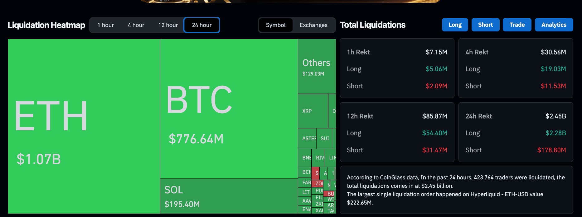 Hari ketiga penurunan pasar kripto, yang jatuh pada hari Sabtu, menjadi yang terberat bagi para bull. Saat ini likuidasi di pasar kripto dalam 24 jam - 2,45 miliar $.