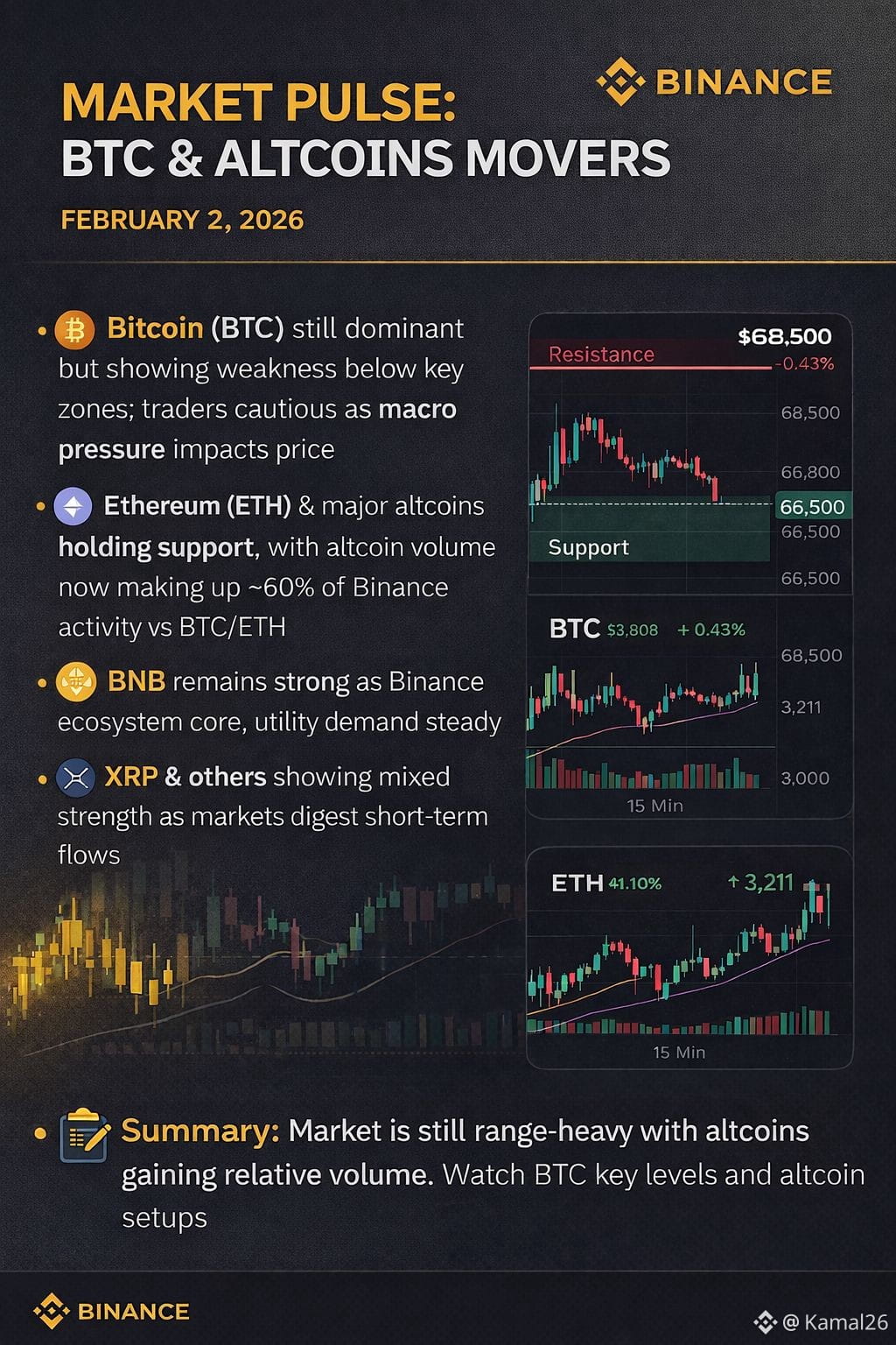šŸ”ø Ethereum ($ETH ) & major altcoins holding support, with altcoin volume now making up ~60% of Binance activity vs BTC/ETH.