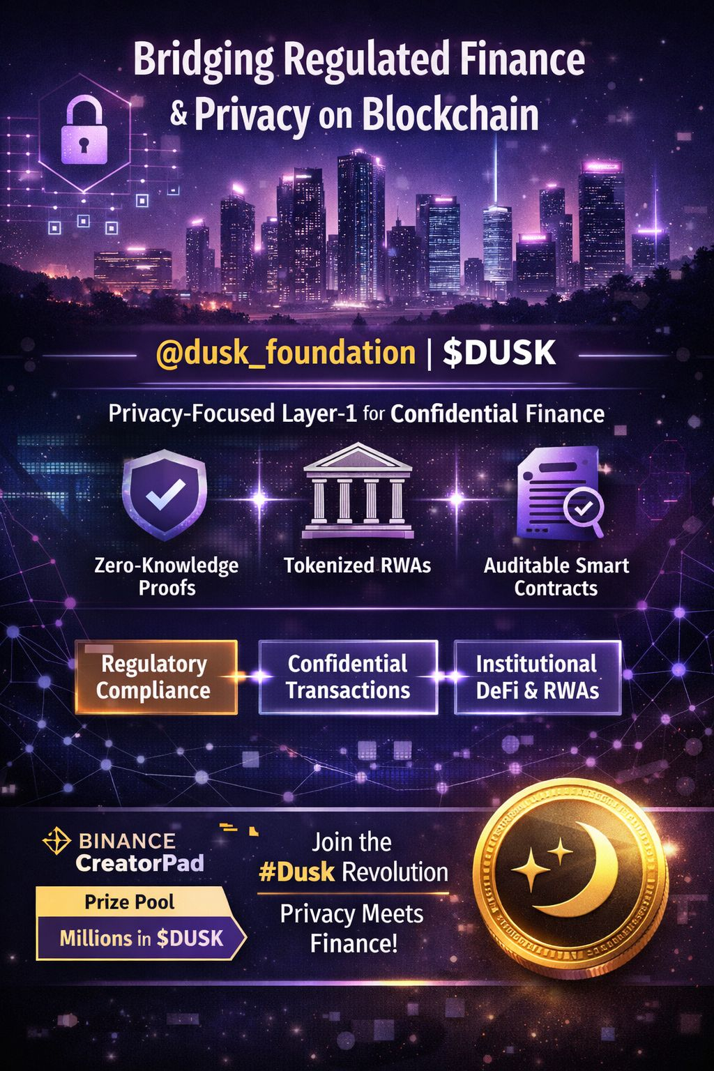 📊 Dengan arsitektur modular termasuk DuskDS untuk penyelesaian dan DuskEVM untuk kompatibilitas EVM, pengembang dapat menerapkan kontrak Solidity yang sudah dikenal sambil memanfaatkan fitur privasi yang memenuhi kebutuhan regulator dan pengguna. Ekosistem ini juga semakin mendapatkan perhatian dengan kemitraan dan kampanye, seperti berpartisipasi dalam Binance CreatorPad untuk melibatkan pembangun dan memberikan penghargaan kepada komunitas dengan kumpulan hadiah jutaan $DUSK. �