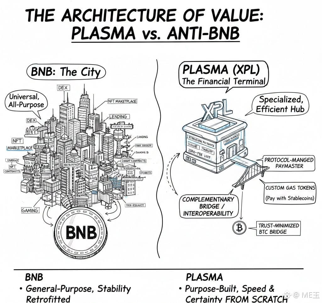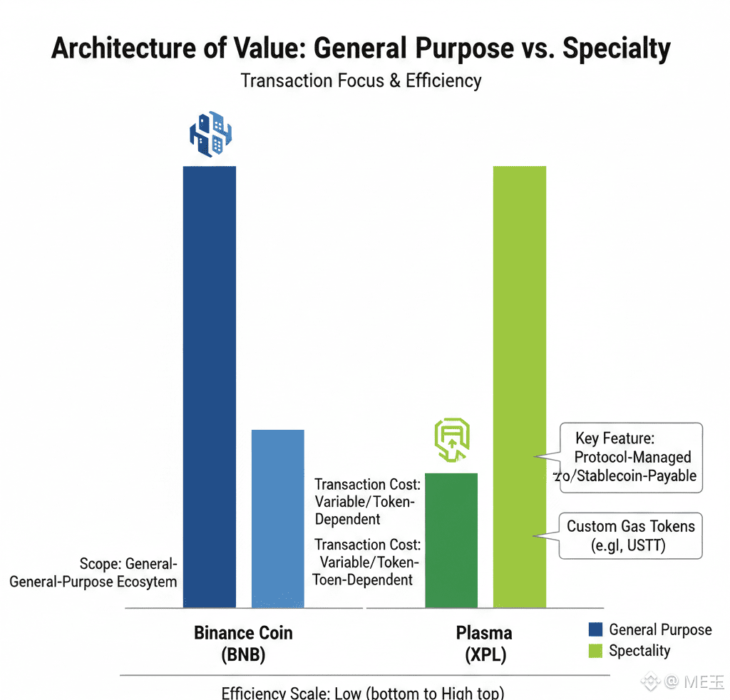 BNB's value is derived from the breadth and activity of its ecosystem. Plasma is betting its value on the depth and indispensability of its structure for a specific, trillion-dollar use case: moving digital dollars. It represents the argument that in blockchain's evolution, the most resilient value may be architected not for everything, but for the one thing done exceptionally well.