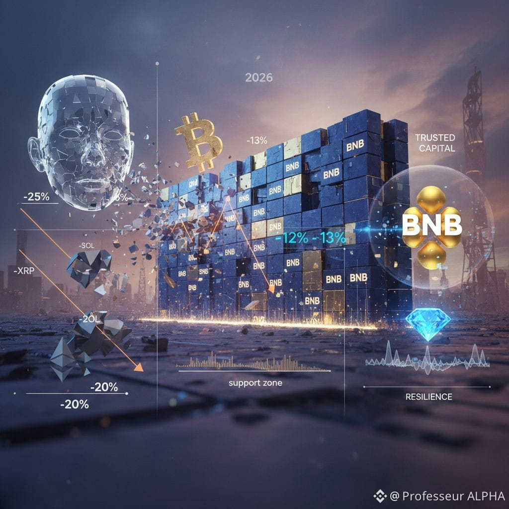 Le contraste est aujourd'hui frappant. Alors que l'ETH a chuté de plus de 25% et que des actifs comme SOL ou XRP affichent des baisses supérieures à 20%, le BTC recule de 13%. De son côté, le BNB limite la casse avec seulement 12 à 13% de baisse, s'imposant comme l'actif le plus performant du top market cap.