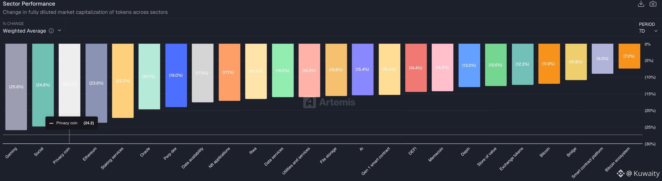 كانت العملات المشفرة الخاصة من بين القطاعات الأضعف أداءً في سوق العملات المشفرة الأسبوع الماضي، مع انخفاض يقارب 25%.