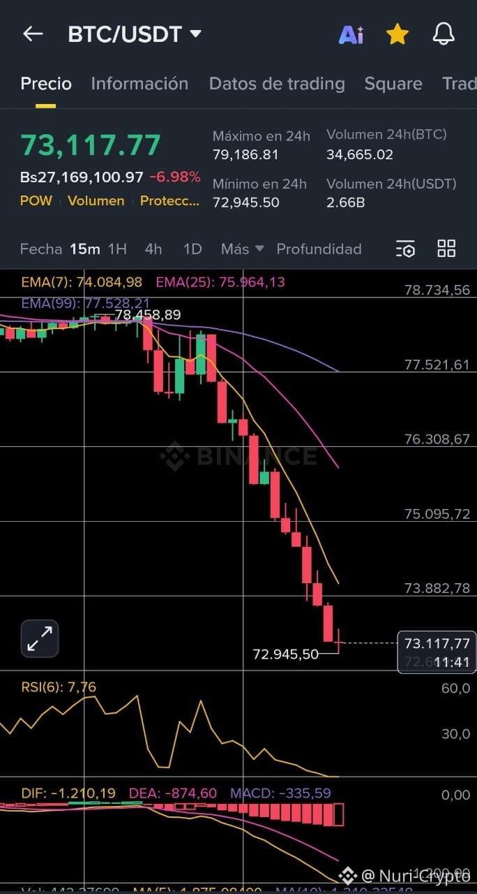 1. Capitulación Técnica: Tras perder el soporte de los $78,000, se activó una cascada de liquidaciones en el mercado de futuros que superó los $2,500 millones. Esto forzó ventas automáticas, llevando el precio a mínimos de corto plazo con un volumen de pánico visible en las gráficas de 15 minutos.