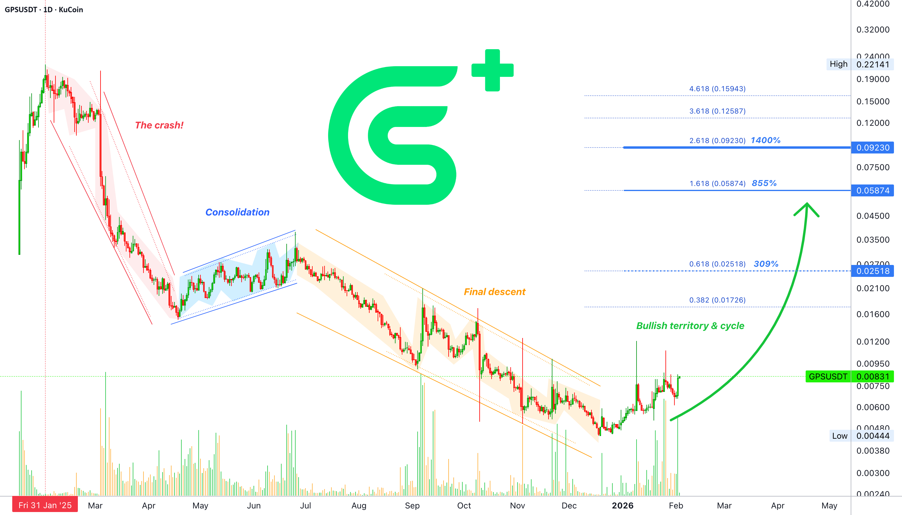 Ketika proyek seperti ini bertentangan dengan arah umum pasar, itu hanya mengungkapkan sesuatu yang mungkin terjadi. Itu tidak bisa tumbuh dalam penurunan pasar yang menyeluruh. Fakta bahwa GPSUSDT telah bullish sejak pertengahan Desember, menunjukkan bahwa penurunan sebelumnya tidak dimaksudkan untuk bertahan selama berbulan-bulan. Itu bertahan selama beberapa bulan, tetapi sekarang sudah berakhir; kita sedang dalam tren naik sekarang.