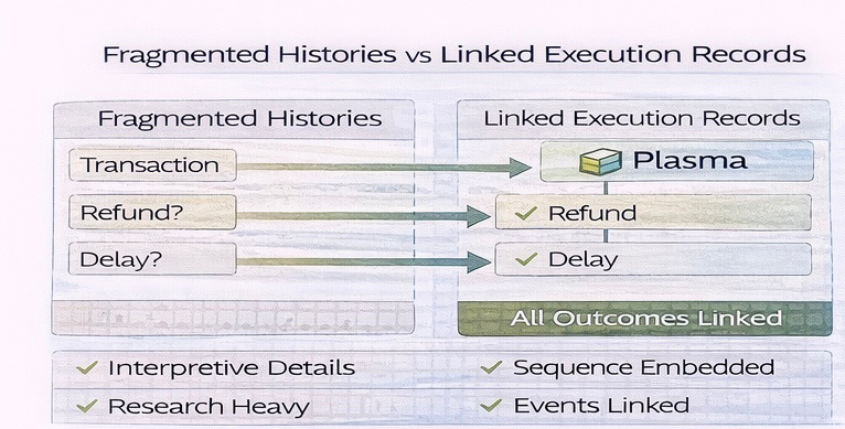 Pendapat saya adalah bahwa sejarah transaksi harus menceritakan sebuah kisah yang koheren tanpa interpretasi. Sistem yang memecah sejarah memaksa manusia untuk mengisi kekosongan, yang memperkenalkan kesalahan dan keterlambatan. Penekanan Plasma pada catatan eksekusi yang terhubung mencerminkan pemahaman yang matang tentang bagaimana kebenaran keuangan dipertahankan seiring waktu.