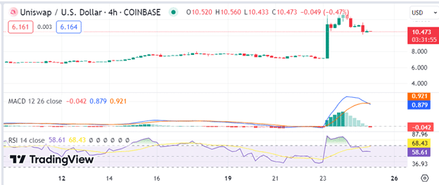 Aksi harga langsung ini kontras dengan reli sebelumnya, di mana UNI melonjak lebih dari 50%, didukung oleh antisipasi seputar proposal tata kelola. Setiap hari, harga token berfluktuasi secara signifikan dan saat ini diperdagangkan pada $10.52.