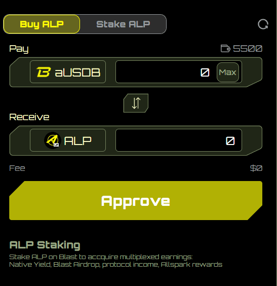 2. Setelah mint token uji selesai, lanjut ke tugas interaksi. Yang pertama adalah di antarmuka "earn" ini, terutama membeli ALP dan menyetor ALP, saat ini hanya bisa membeli, menyetor akan dibuka setelah Blast上线 (mainnet), jadi Anda bisa membeli ALP terlebih dahulu, atau abaikan sementara dan lanjut ke tugas kedua.