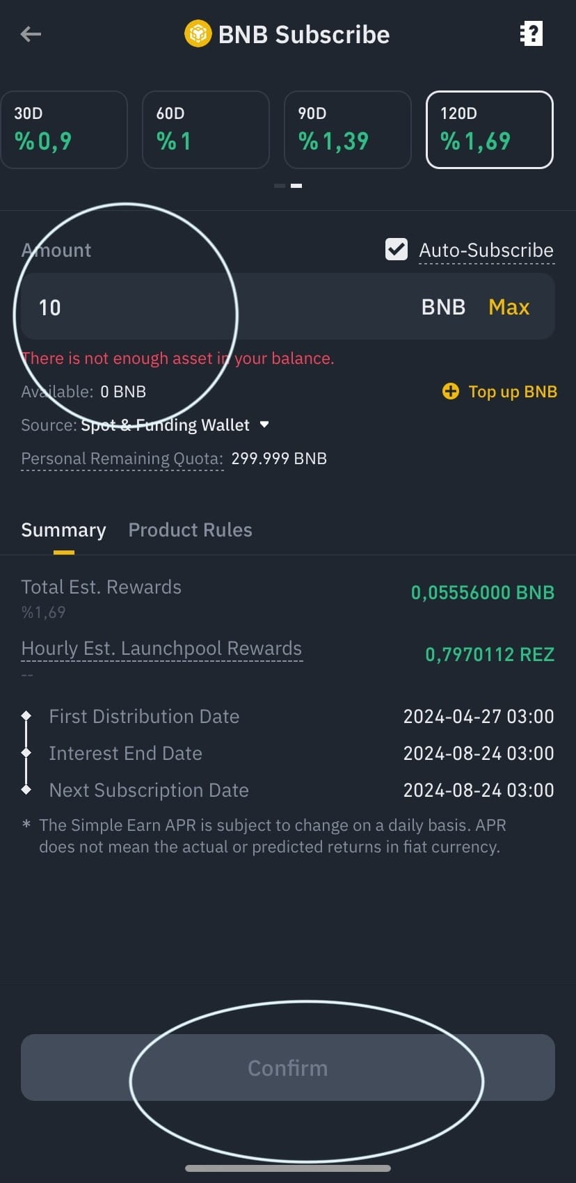 4- Anda dapat memilih salah satu opsi 30-60-90-120 hari. Kemudian tulis jumlah yang ingin Anda kunci di kotak jumlah dan konfirmasi di bawah.