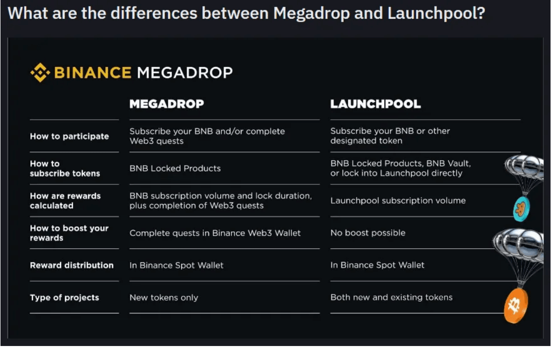Agar tidak membingungkan produk dengan Launchpool, perbedaan antara Binance Megadrop dan Launchpool ada pada tabel.