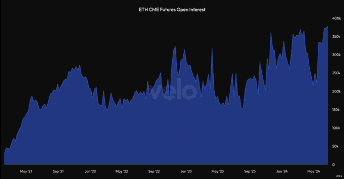 CME, una piattaforma chiave per il trading istituzionale di futures, ha registrato un’impennata dell’open interest da novembre. Le voci sull'approvazione dell'ETF hanno innescato un forte rialzo a maggio. Insomma? Le istituzioni scommettono sull'imminente approvazione dell'ETF e sono ottimiste sull'ETH a lungo termine.