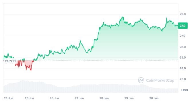 Avalanche, una piattaforma altamente scalabile e decentralizzata, è nota per la sua impressionante velocità di transazione e le commissioni basse. Il prezzo di AVAX è recentemente sceso al minimo di sette mesi, scambiando intorno a 28,48 dollari. Nonostante questo calo, AVAX mostra un potenziale di ripresa. Il Relative Strength Index (RSI), un oscillatore di momentum utilizzato nell'analisi tecnica, indica che AVAX potrebbe riprendersi dalla sua zona di ipervenduto. Se AVAX riuscisse a chiudere al di sopra del livello di supporto chiave di 31 dollari, potrebbe segnare una svolta rialzista per il token.