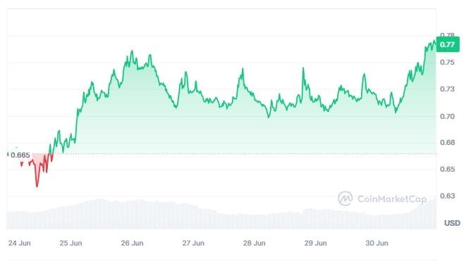 MANTRA è una blockchain RWA di sicurezza Layer-1 che si distingue per le sue funzionalità senza autorizzazione per le applicazioni autorizzate. Nonostante sia relativamente sconosciuto, MANTRA ha mostrato un notevole potenziale di crescita. A giugno, OM ha registrato una crescita del 55%, anche se ha subito una battuta d’arresto dopo non essere riuscita a superare la soglia di 1,04 dollari. Tuttavia, è riuscito a sostenere un livello di supporto critico a 0,64 dollari, che è rimasto stabile per oltre tre mesi.