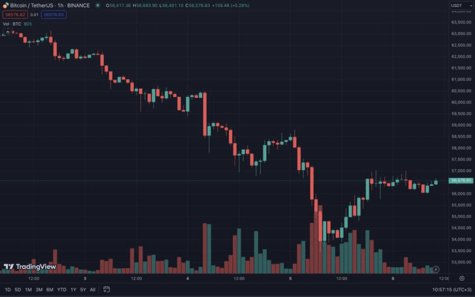 Al momento in cui scrivo, Bitcoin viene scambiato a $BTC $ 56.600.