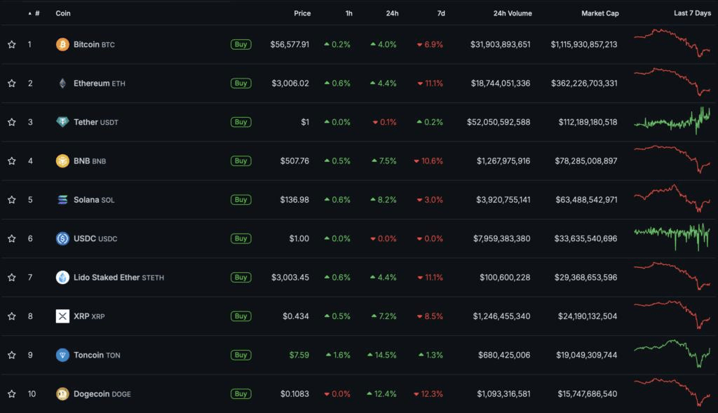 La sera di venerdì 5 luglio, le quotazioni della prima criptovaluta sono tornate al livello di #Bitcoin $56.000. Nelle ultime 24 ore, l'asset ha guadagnato il 4%.