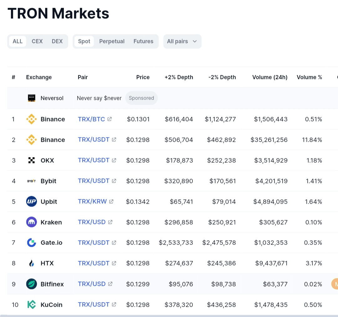 I token #TRX sono quotati sulle principali borse valori, garantendo liquidità e accessibilità.