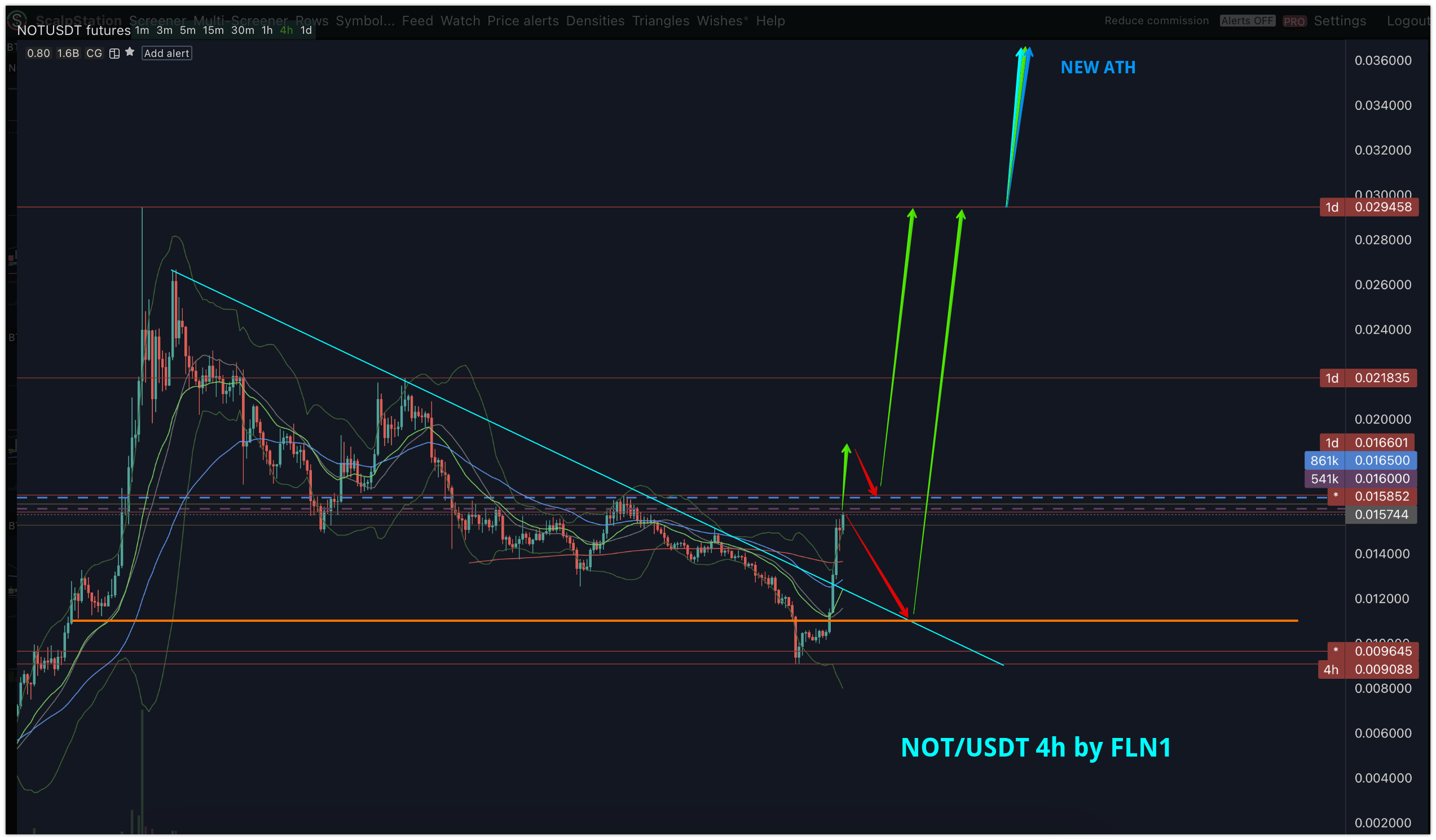 Il grafico $NOT /USDT mostra chiaramente come l'asset ha superato il trend al ribasso e si trova ora vicino a importanti livelli di resistenza. Sicuramente ci sarà una crescita, ma bisogna stare attenti e sfruttare l'eventuale correzione 😉😎😈