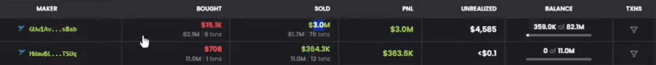Mezz'ora dopo, ha venduto i suoi token per 21.581 $SOL, guadagnando oltre 3,05 milioni di dollari