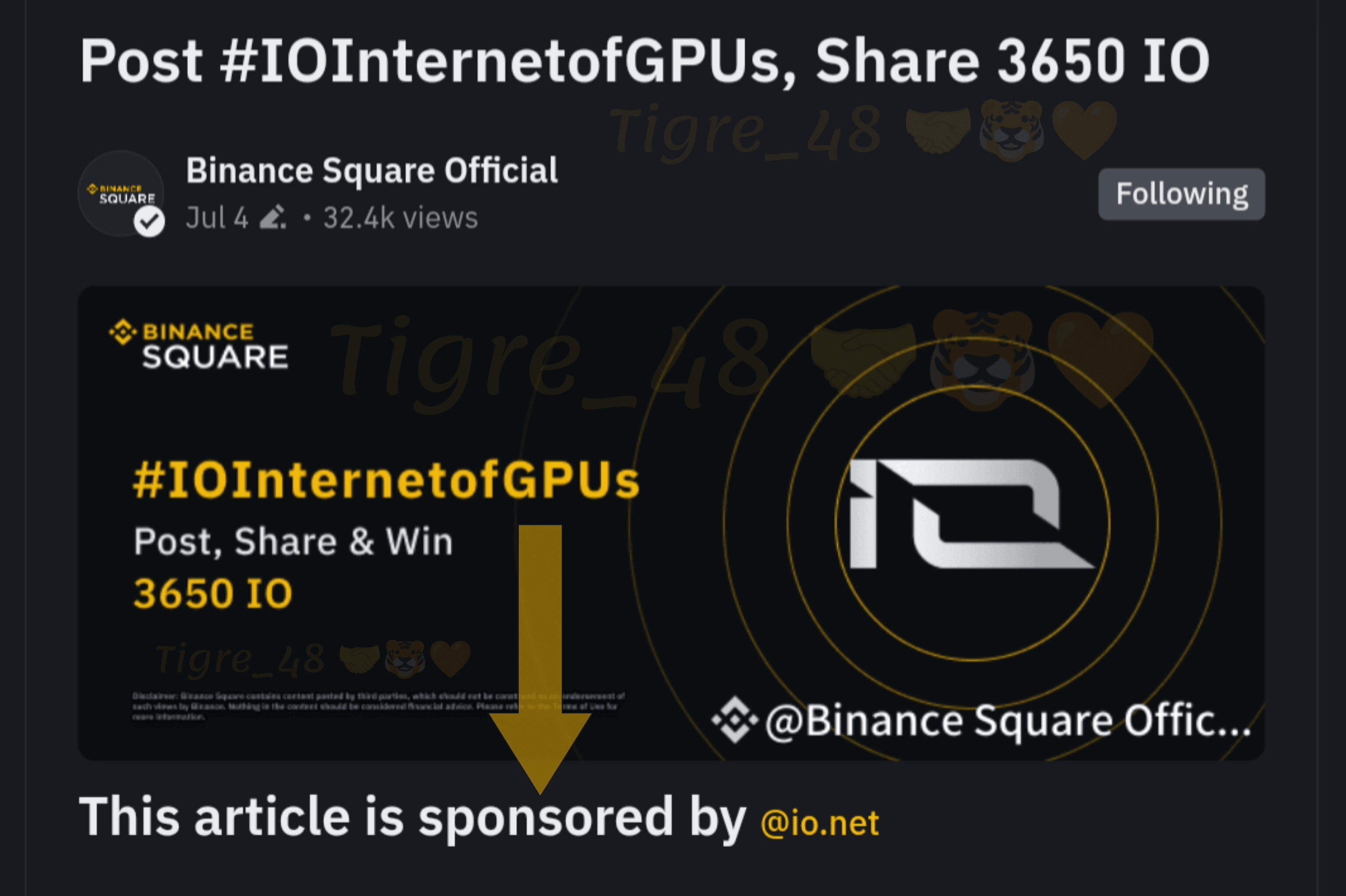 @IONET1 ha sponsorizzato i principali account Binance [ @Binance Square Official , @币安广场 ], quindi sponsorizza ogni creatore che partecipa a questo evento ( #IOInternetofGPUs )