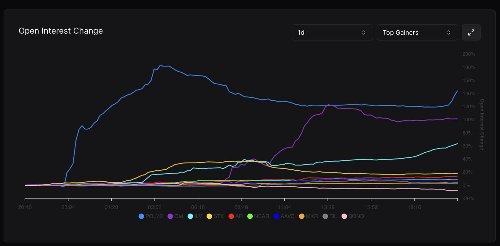 Sentimento di mercato: un OI in aumento suggerisce che nuovi soldi stanno fluendo nel mercato, indicando una potenziale continuazione dell'attuale tendenza. Al contrario, un OI in calo suggerisce che i soldi stanno lasciando il mercato, il che potrebbe segnalare un'inversione di tendenza.