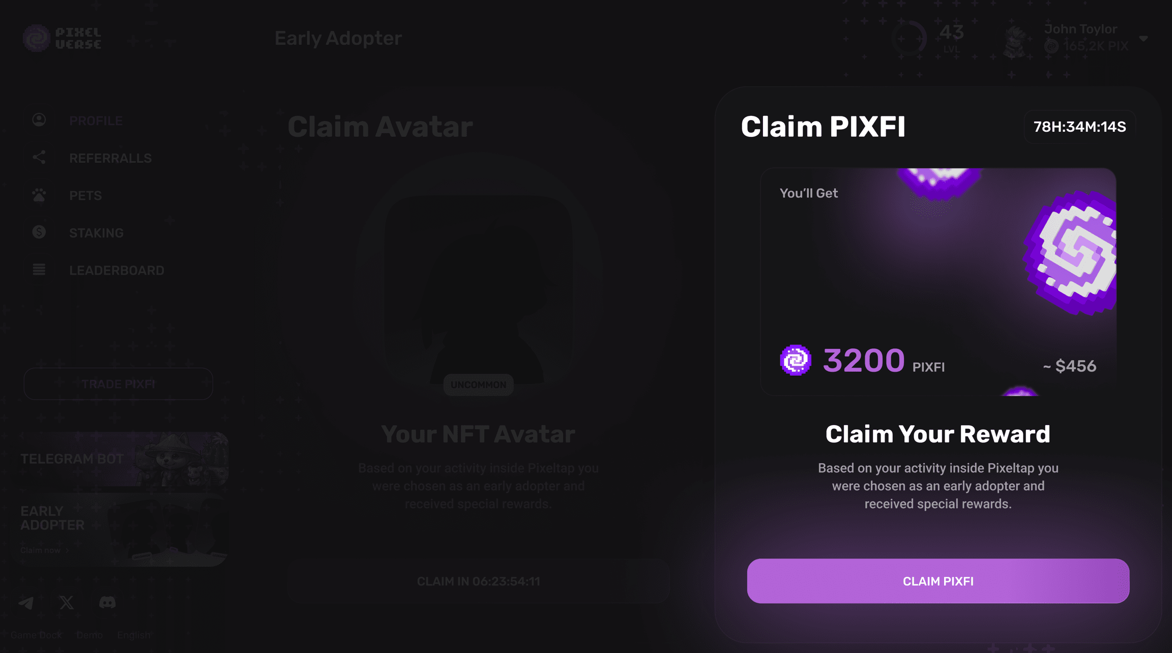 Passaggio 2) Ogni primo utente di PixelTap verrà ricompensato con un avatar NFT che potrà essere richiesto il 25 luglio 2024