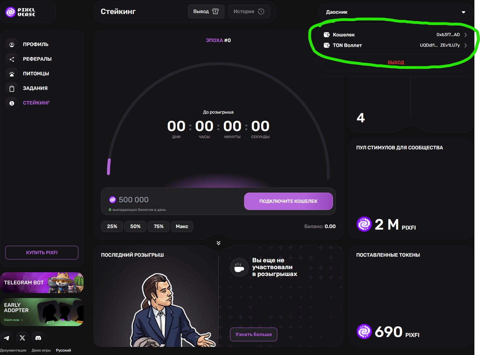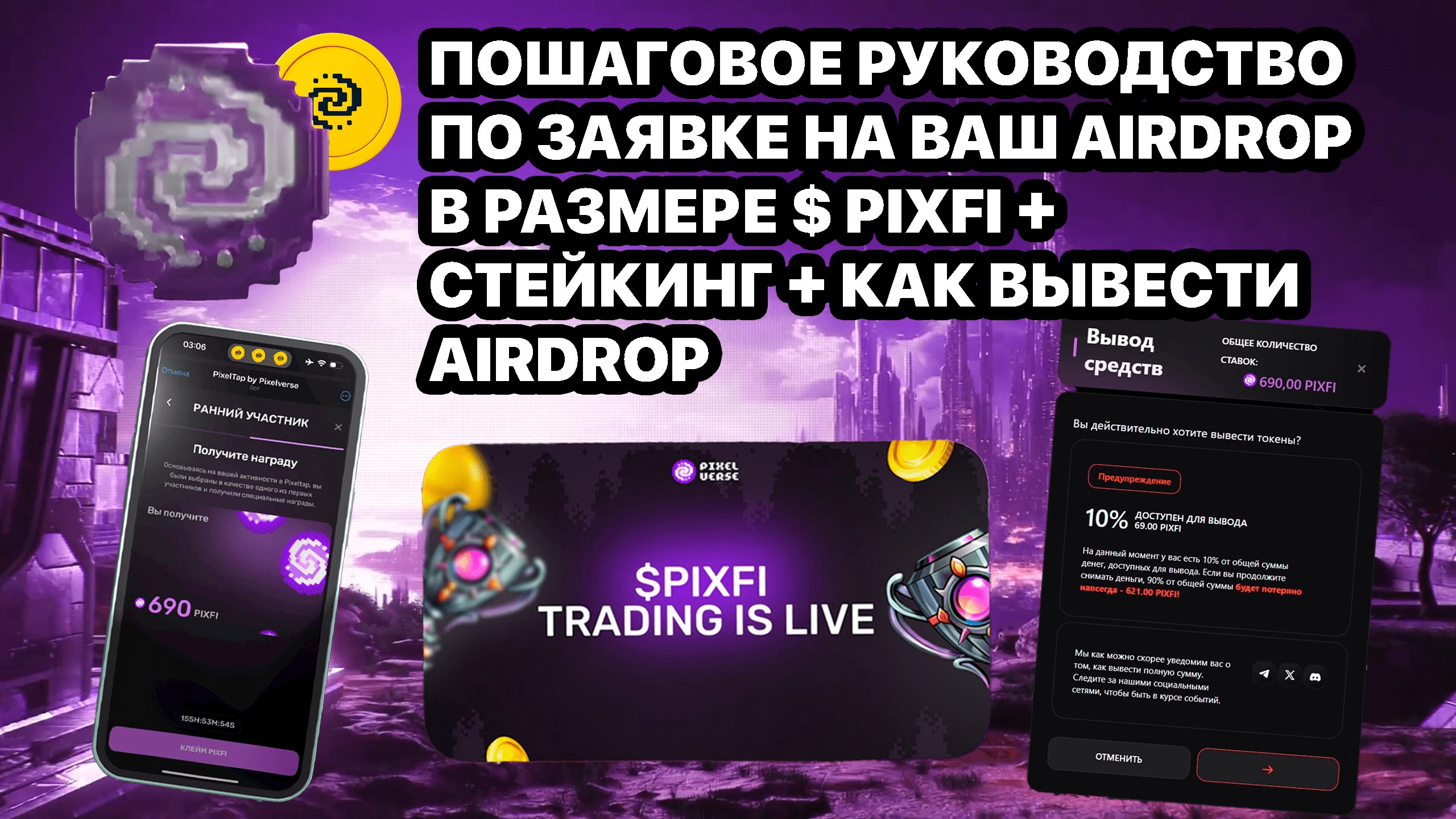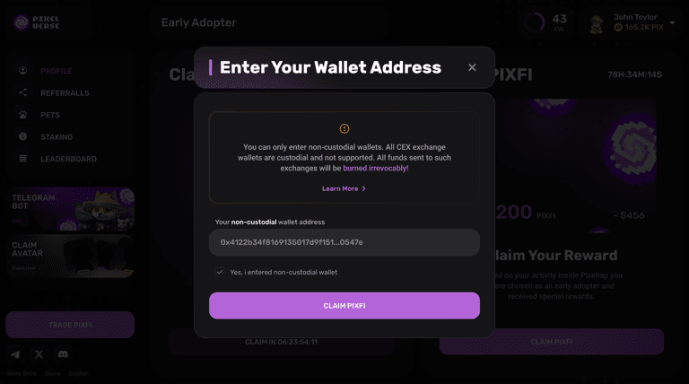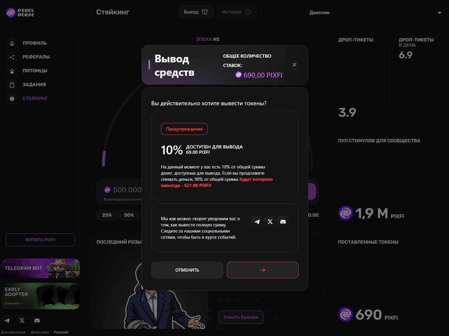 Ciao criptani! La quotazione del token PIXFI è arrivata e ai giocatori nella fase iniziale è stato dato un piccolo AirDrop. I giocatori hanno due opzioni: scommettere e ottenere maggiori profitti, oppure ritirare il 10% del suo importo sul proprio portafoglio e venderlo.